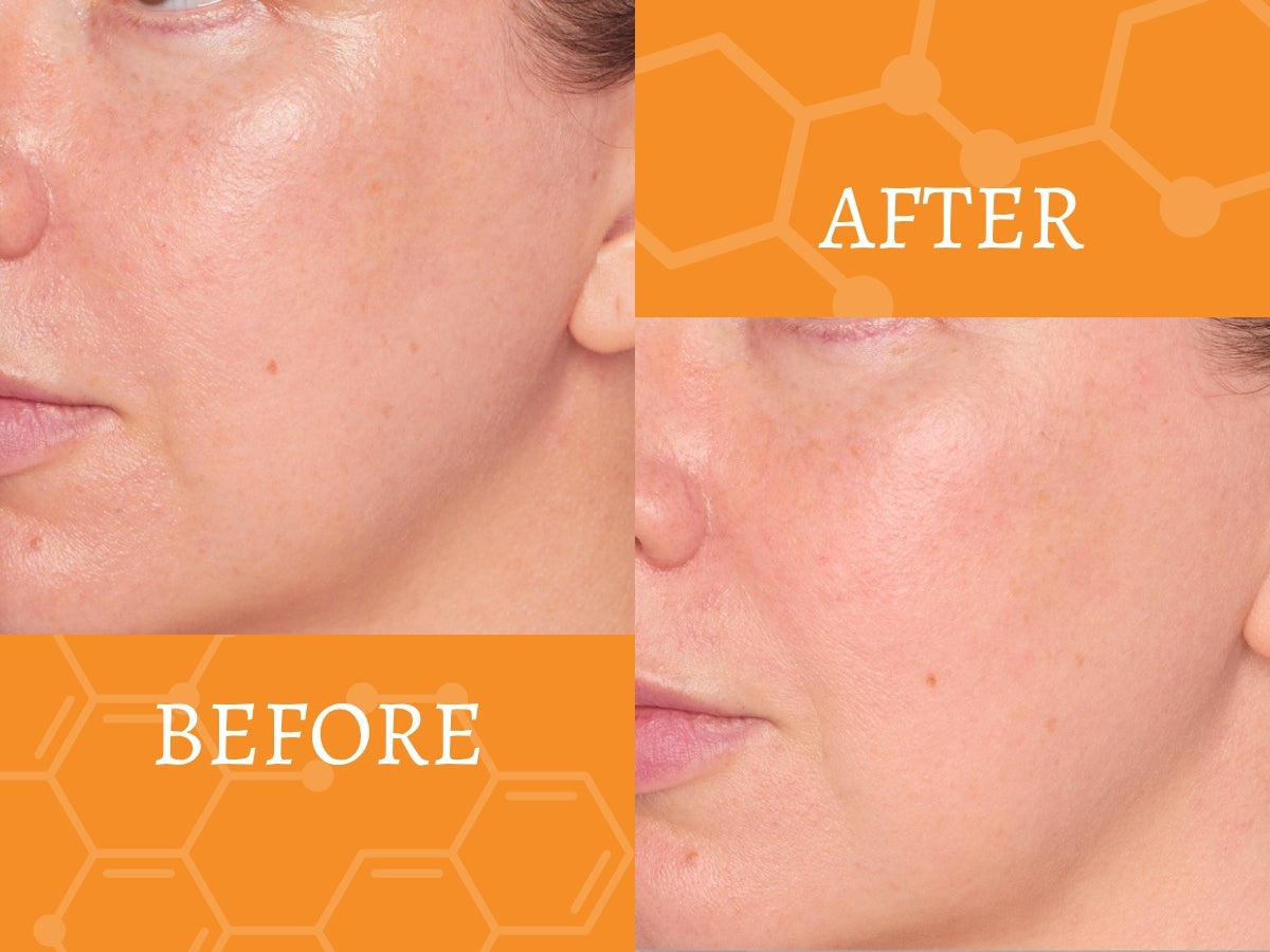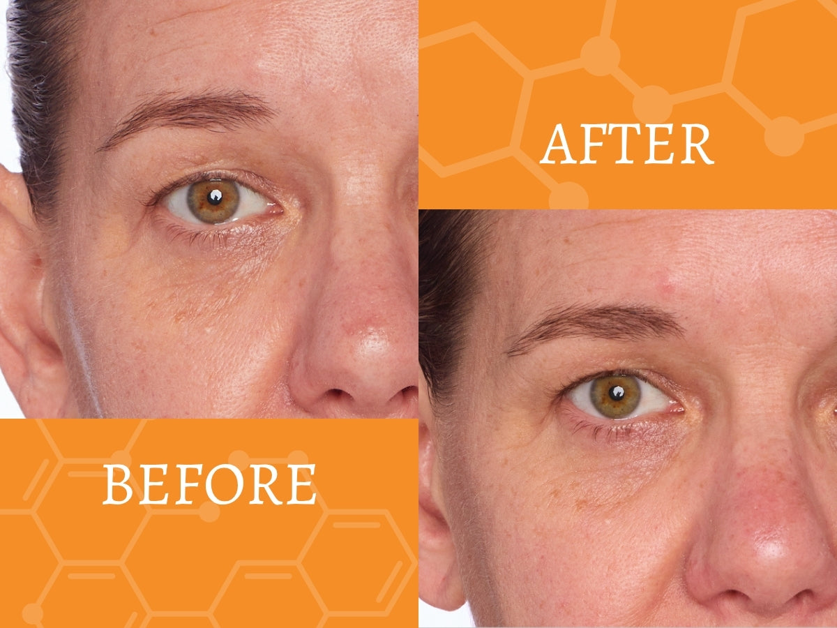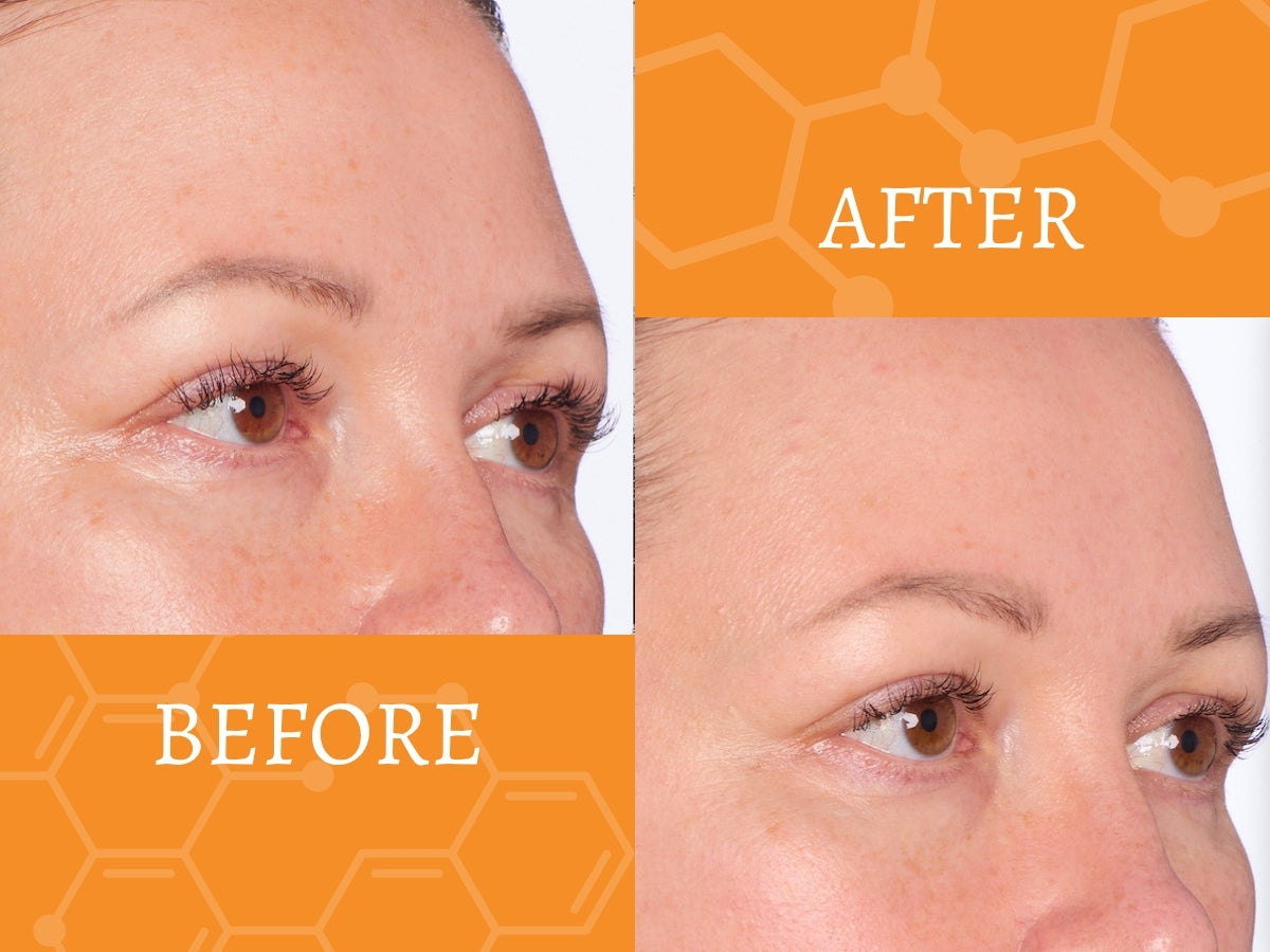 Notice the reduction of fine lines in the crease of the eye and the reduction in freckle intensity. The Vitamin C Serum helps return youthful vibrance to your eyes.